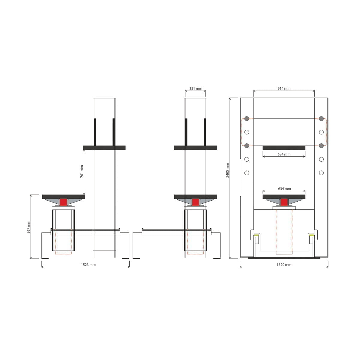 Die Stürmer Maschinen GmbH in Deutschland stellt hochwertige hydraulische Pressen her, die eine Presskraft von 150 t und eine Vorschubgeschwindigkeit von 3 mm/s bieten. Die Maschine hat eine stabile Auflageplatte, einen doppeltwirkenden Zylinder für steuerbaren Vor- und Rücklauf und ein Manometer zur Pressdruckanzeige. Sie verfügt über eine Arbeitstischverfahrgeschwindigkeit von 10 mm/s und eine Motorleistung von 3,7 kW. Mit Abmessungen von 1320x1523x2405 mm und einem Gewicht von 2364 kg, bietet sie hohe Qualität Made in Canada.