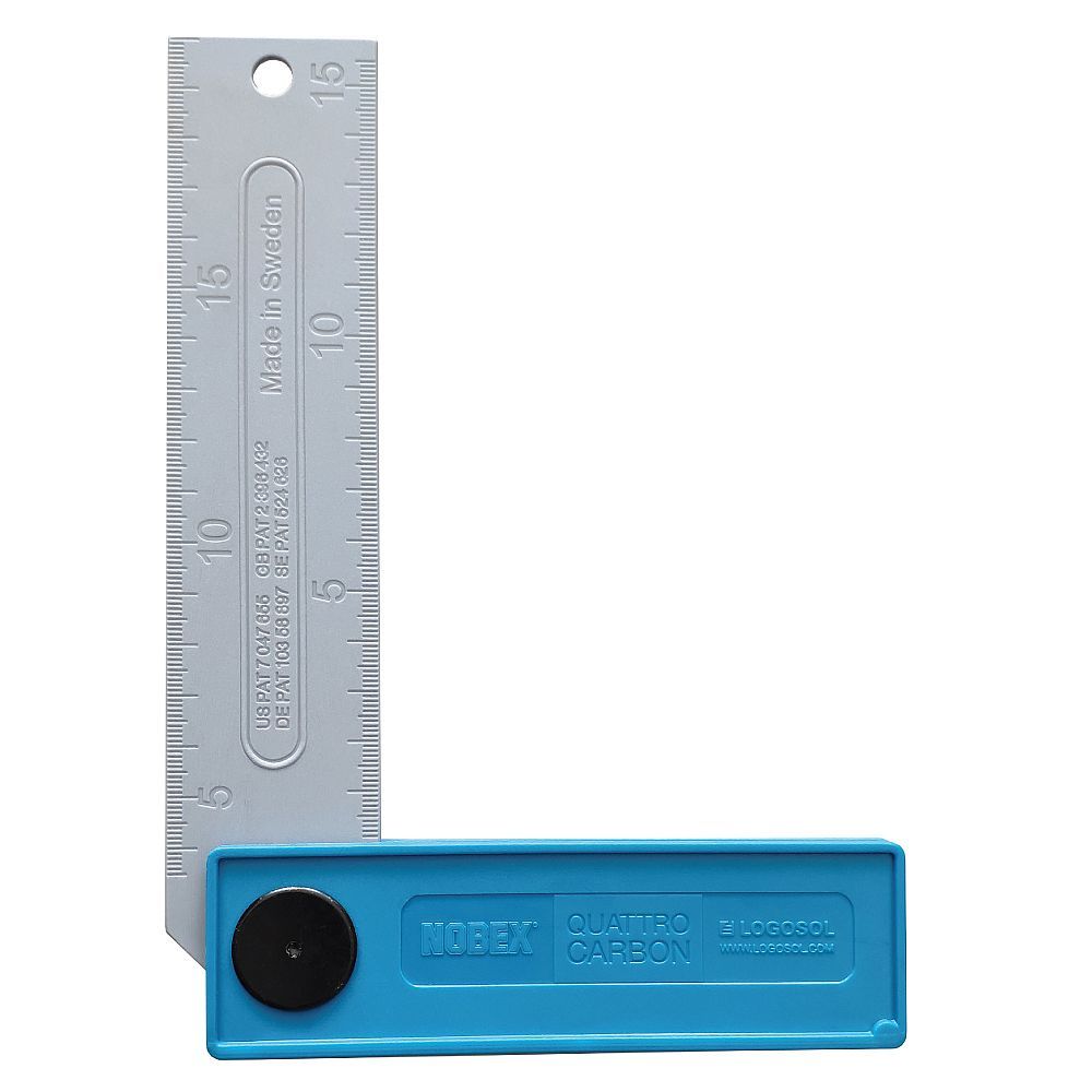 Nobex Quattro Carbon ist ein Zusammenklappbar Gehrungswinkel mit drei Einrastungen, leicht auf- und zuzuklappen und eignet sich dank seines geringen Gewichts von nur 55 g ideal für die Tasche jedes Tischlers oder Schreiners. Die Genauigkeit bei der Winkeleinstellung ist +/- 0,08°. Das Winkellineal hat eine beidseitige Skala, in mm auf einer Seite und Zoll auf der anderen.