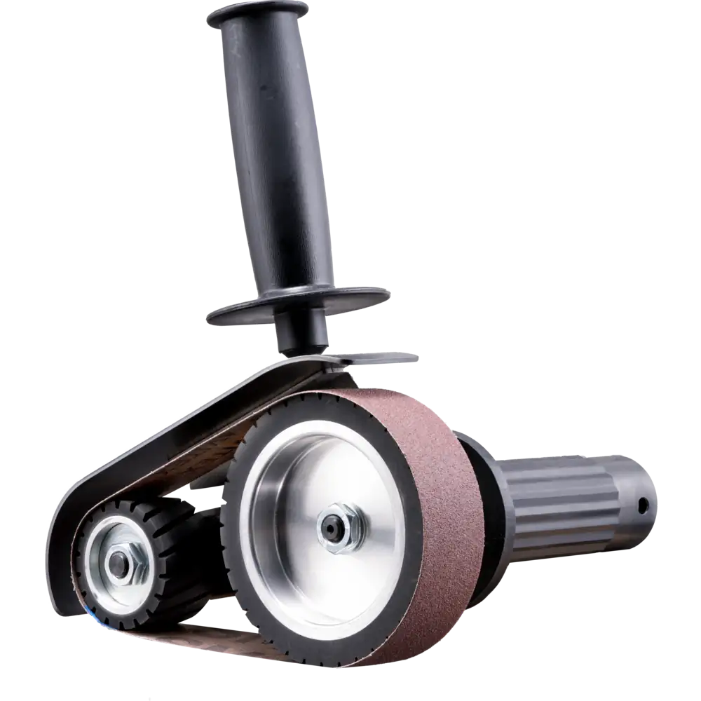 1 Spannschlüssel (SKST SW 17 mm). Bandschleifgerät mit einer Bandlänge von 450 mm x Breite 35 mm. Passende Bänder: BA 35/450 und VB 35/450. Anschließbar an alle Biegwellen mit Gleitanschluss G28 (statt Handstück).