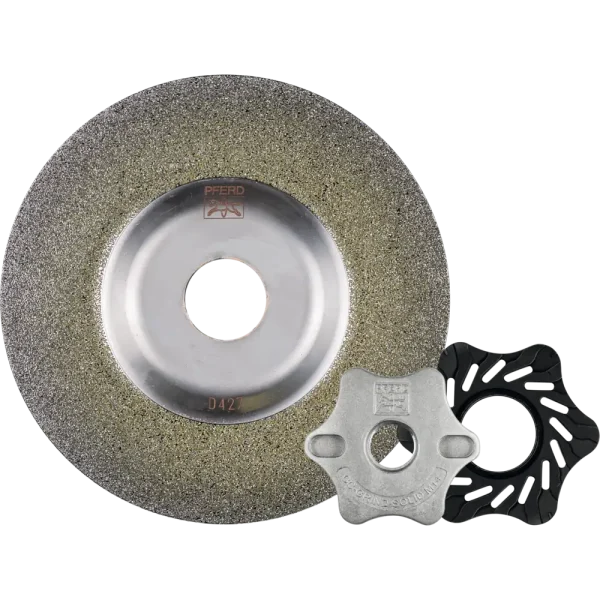 Die CC-GRIND SOLID-DIAMOND wurde speziell für Anwendungen auf harten Werkstoffen entwickelt, die mit konventionellen Werkzeugen aus Korund oder Siliciumcarbid nicht bearbeitet werden können. Die CC-GRIND SOLID-DIAMOND wird sowohl im Nass- als auch im Trockenschliff eingesetzt. Passendes Spannflanschset (M14-Gewinde) im Lieferumfang enthalten.