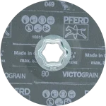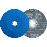 Das COMBICLICK-System besteht aus einem speziell entwickelten Stützteller und einer stabilen Halterung auf der Rückseite des Werkzeuges. Mit dem Stützteller können COMBICLICK-Werkzeuge auf handelsüblichen Winkelschleifern eingesetzt werden. Die besondere Geometrie der Kühlschlitze sorgt für einen hohen Luftdurchsatz, wodurch die thermische Belastung des Schleifmittels und des Werkstückes deutlich reduziert wird. Das Schnellspannsystem, die robuste Halterung, die sichere Arretierung des Werkzeuges und das integrierte Kühlsystem bewirken gegenüber herkömmlichen Werkzeugen eine bis zu 30 % geringere Werkstücktemperatur, 25 % höhere Zerspanungsleistung, 30 % höhere Standzeit und eine bessere Ausnutzung des Schleifmittels. Fiberschleifer von PFERD TOOLS werden nach ISO 16057 in der Form A1 Ausführung F unter der Bezeichnung „Vulkanfiberschleifer“ hergestellt. Für höchst aggressives Schleifen mit ultimativer Abtragsleistung auf Stahlwerkstoffen, harten und schlecht wärmeleitenden Werkstoffen bei gleichzeitig extrem hoher Standzeit. Ultimative, konstante Höchstleistung durch das VICTOGRAIN-Schleifkorn. Schleifaktive Zusätze im Belag erzielen eine deutlich höhere Abtragsleistung, verhindern das Zusetzen und bewirken einen kühleren Schliff.