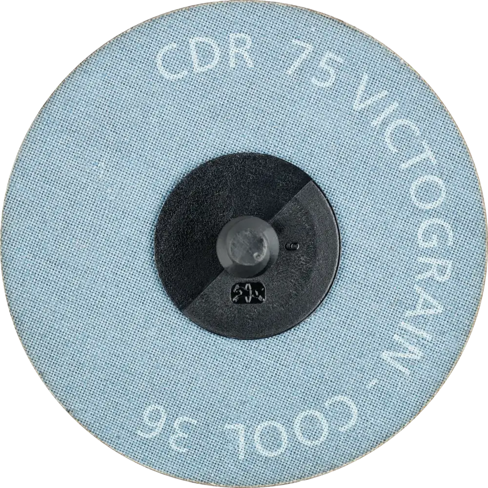 Für höchst aggressives Schleifen mit ultimativer Abtragsleistung auf Stahlwerkstoffen, harten und schlecht wärmeleitenden Werkstoffen bei gleichzeitig extrem hoher Standzeit. Ultimative, konstante Höchstleistung durch das VICTOGRAIN-Schleifkorn. Schleifaktive Zusätze im Belag erzielen eine deutlich höhere Abtragsleistung, verhindern das Zusetzen und bewirken einen kühleren Schliff. Die VICTOGRAIN-Schleifkörner werden mit einer Seite des Dreiecks auf dem Träger fixiert. Dadurch werden sie besonders fest eingebunden und bieten in Verbindung mit der schlanken Form einen extrem großen Spanraum, wodurch der Zerspanprozess nochmals effizienter wird. Auch der strukturelle Aufbau der Dreiecke von VICTOGRAIN ist speziell angepasst. Die sehr kleinen Kristalle innerhalb des Dreiecks bieten ein optimales Verschleißverhalten: Es stehen stets sehr scharfe Schneiden zur Verfügung, aber nur ein notwendiges Minimum des Schleifkorns/Dreiecks bricht weg. Die Kombination dieser Eigenschaften bietet dem Anwender eine ultimative, konstante Höchstleistung bei kühlem Schliff und eine extrem hohe Standzeit bei gleichmäßiger Oberflächenrauheit des Werkstücks. Das Aufspannsystem CDR verfügt auf der Werkzeugseite über eine Schraubverbindung mit Außengewinde (Kunststoff). Auch passend zu den im Markt eingesetzten Systemen: Roloc™, Lockit, Speed Lok TR, Power Lock Typ III, Fastlock-System B, Roll-On.