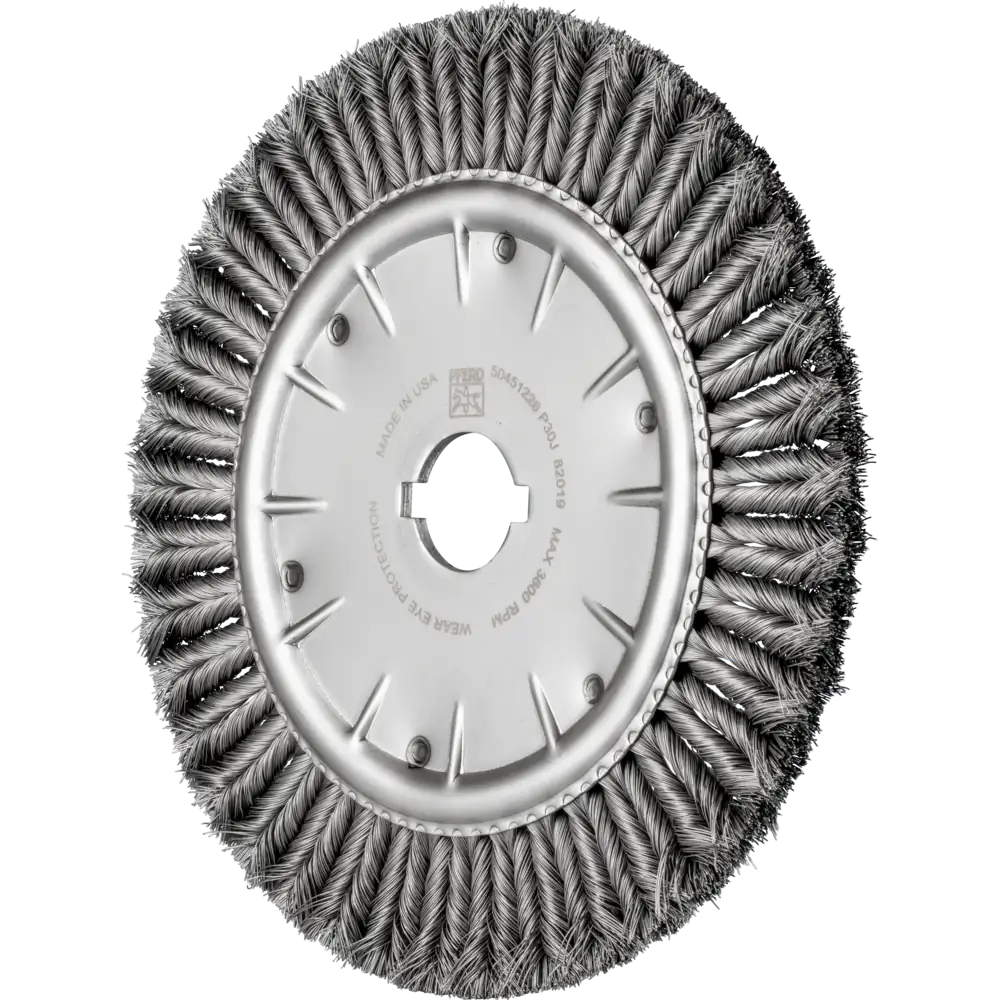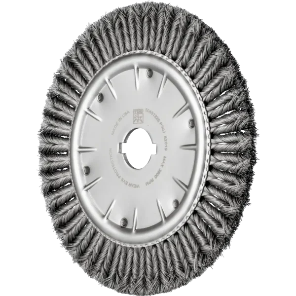 Stahldraht ist das gebräuchlichste Besatzmaterial. Bürsten mit dem Besatzmaterial Stahldraht eignen sich besonders gut zur Oberflächenbearbeitung und zum Entgraten. PFERD TOOLS Spezialdraht verfügt über eine hohe Zug- und Biegewechselfestigkeit. Dieser gewährleistet eine optimale Abnutzung des Drahtes sowie eine hohe Standzeit, auch bei extremen Bürstanwendungen. Stahldraht hält Temperaturen bis 300 °C stand. Sehr aggressive und stabile Bürste, die hoher mechanischer Belastung standhält. Für alle schweren Bürstarbeiten im stationären und automatisierten Einsatz, z. B. Entgratarbeiten, geeignet.
