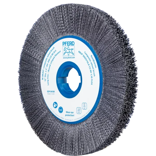 Startseite » Shop » Pferd Tools COMPOSITE FLEX Rundbürste RBUP Ø 350x13x50,8 mm Keramik-Filament-Ø 1,10mm Korn 120 stationär