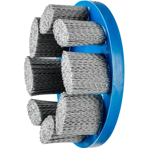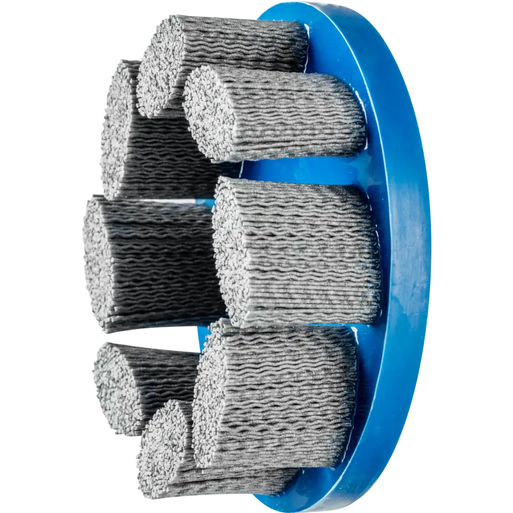 | Produktvorteile – Vorteile | Schleifkörner sind in flexiblen Kunststofffilamenten eingebunden, wodurch der Besatz nicht nur an der Spitze, sondern auch mit den Seiten arbeitet. |