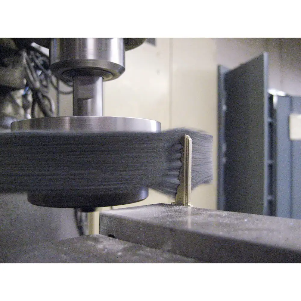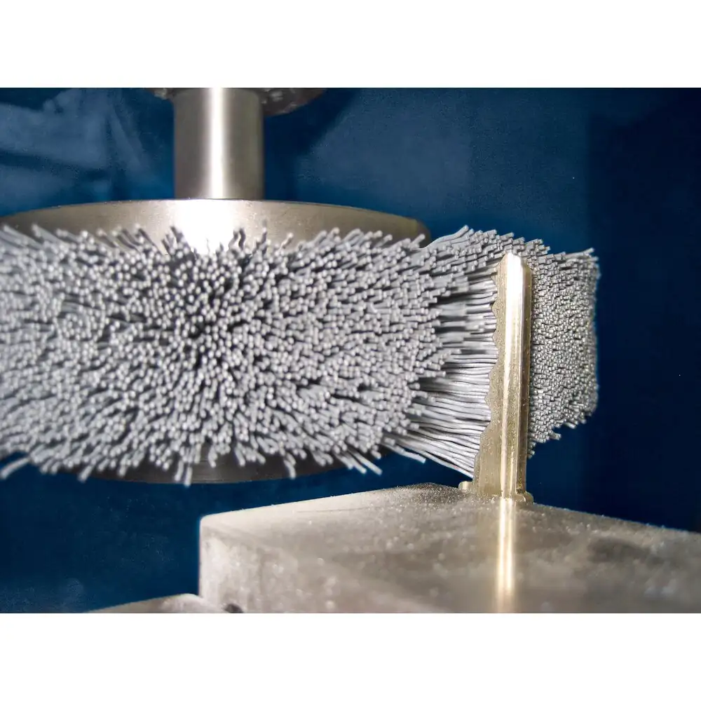 | Produktvorteile – Vorteile | Schleifkörner sind in flexiblen Kunststofffilamenten eingebunden, wodurch der Besatz nicht nur an der Spitze, sondern auch mit den Seiten arbeitet. |