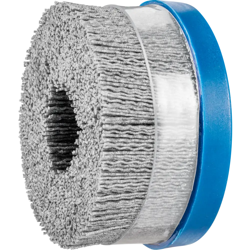 ✓ Schleifkörner sind in flexiblen Kunststofffilamenten eingebunden, wodurch der Besatz nicht nur an der Spitze, sondern auch mit den Seiten arbeitet.