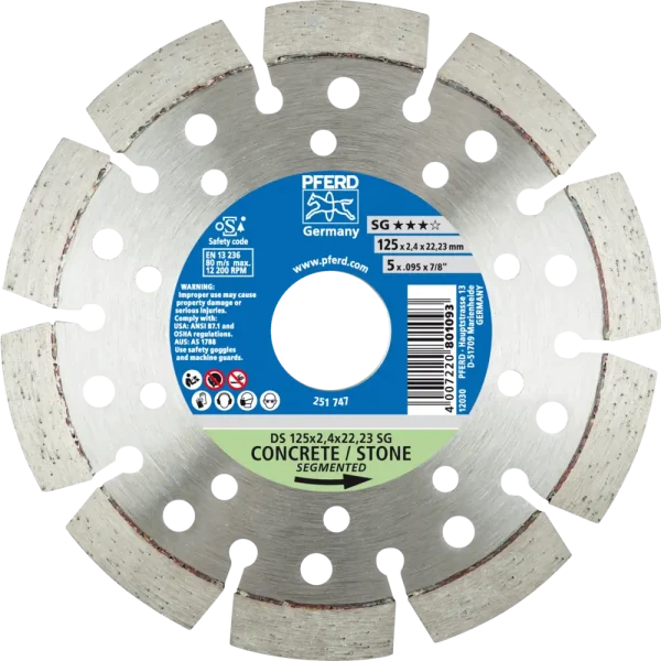 Pferd Tools Diamant-Trennscheibe DS 125×2,4×22,23 mm SG für schnelles Trennen von Stein und Beton