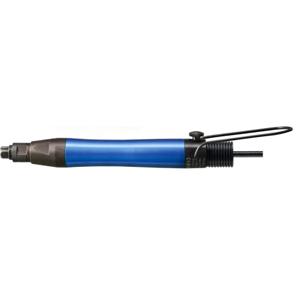 Der Antrieb ist mit einer Spannzangenwerkzeugaufnahme für Schaftwerkzeuge ausgestattet. Der Abluftaustritt des Druckluftantriebs befindet sich hinten. Der handliche Druckluftantrieb mit Druckstart und Drehzahlregulierung eignet sich für den Einsatz mit Senkern. Er muss mit Öl eingesetzt werden. 1 m Ab- und 2,5 m Zuluftschlauch mit Gewindeanschluss 1/4“ außen und Stecktülle mit Gewinde (STGI), 1 Hängebügel, Spannzange 6 mm (Spannzangengruppe 20), 2 Spannschlüssel (1x EM SW 12 mm, 1x EM SW 17 mm).
