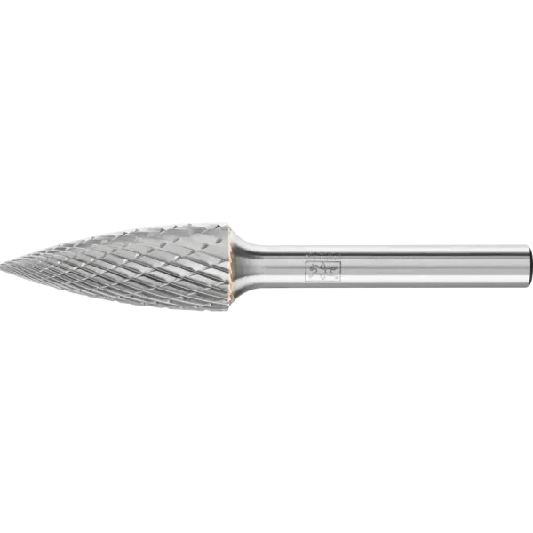 Startseite » Shop » Metallbearbeitung » Frässtifte & Entgratwerkzeuge für Metall, Edelstahl und Guss » Hartmetall Frässtifte » Pferd Tools Hartmetall Frässtift Spitzbogen SPG Ø 12x30mm Schaft-Ø 6 mm Z3P universal mittel kreuzverzahnt
