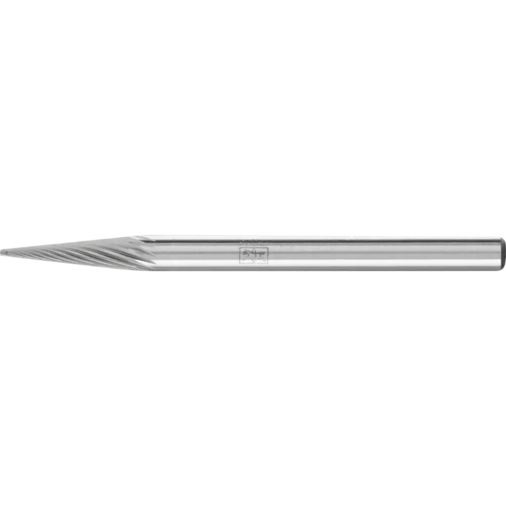 Zahnung 5 eignet sich besonders gut zur feinen Zerspanung von Gusseisen, Stahl, Edelstahl (INOX) und hochwarmfesten Werkstoffen wie Nickelbasis-, Kobaltbasislegierungen. Sie erzeugt gute Oberflächen. Hartmetallfrässtifte für universelle Anwendungen eignen sich zur Fein- und Grobzerspanung auf den wichtigsten industriell verwendeten Werkstoffen. Sie bieten eine gute Zerspanungsleistung und können werkstoffübergreifend eingesetzt werden. Spitzkegelförmiger Frässtift nach DIN 8032 mit Verzahnung nach DIN 8033, Spitze abgeflacht.