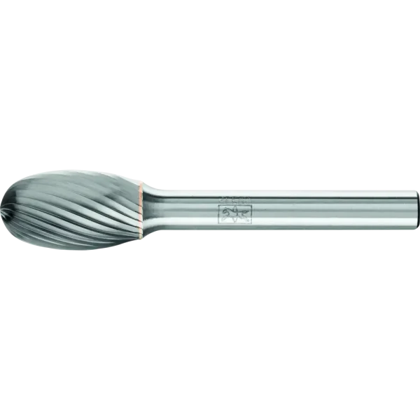Zahnung 3 eignet sich besonders gut zur Zerspanung von Gusseisen, Stahl, Edelstahl (INOX), Nickelbasis- und Titanlegierungen. Sie zeichnet sich durch einen hohen Materialabtrag aus und erzeugt gute Oberflächen. Hartmetallfrässtifte für universelle Anwendungen eignen sich zur Fein- und Grobzerspanung auf den wichtigsten industriell verwendeten Werkstoffen. Sie bieten eine gute Zerspanungsleistung und können werkstoffübergreifend eingesetzt werden. Tropfenförmiger Frässtift nach DIN 8032 mit Verzahnung nach DIN 8033.