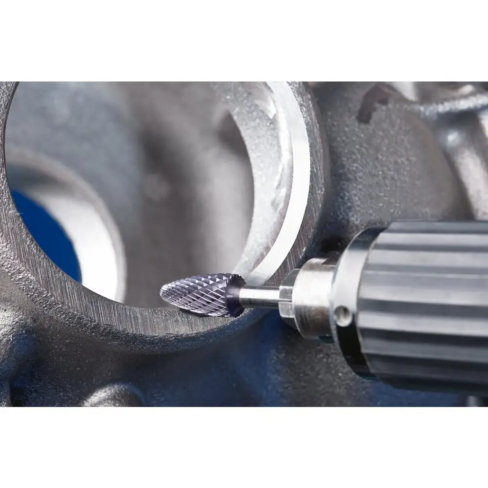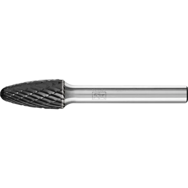 Zahnung 3 PLUS mit HICOAT-Beschichtung HC-FEP zeichnet sich durch eine hohe Härte und Verschleißfestigkeit aus. Sie erlaubt eine effektive Spanabfuhr durch verbesserte Gleiteigenschaften und ist sehr temperaturbeständig. Sie ermöglicht eine längere Standzeit der Werkzeuge sowie den Einsatz im höheren Schnittgeschwindigkeitsbereich im Vergleich zu unbeschichteten Frässtiften. Rundbogenförmiger Frässtift nach DIN 8032 mit Verzahnung nach DIN 8033.
