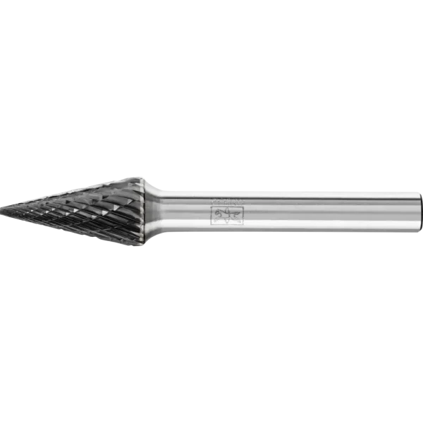 Startseite » Shop » Metallbearbeitung » Frässtifte & Entgratwerkzeuge für Metall, Edelstahl und Guss » Hartmetall Frässtifte » Pferd Tools Hartmetall Hochleistungsfrässtift Spitzkegel SKM Ø 10x20mm Schaft-Ø 6 mm Z3P HICOAT universal