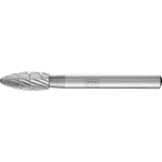 Die Zahnung ALU eignet sich besonders gut zur Zerspanung von weichen NE-Metallen, Messing, Kupfer, Aluminiumlegierungen, Kunststoffen, faserverstärkten Kunststoffen und Gummi. HSS-Frässtifte mit der Zahnung ALU können in einem Drehzahlbereich je nach Frässtiftdurchmesser von 4.000 bis 6.000 RPM eingesetzt werden. Zylindrischer Frässtift mit Stirnverzahnung.
