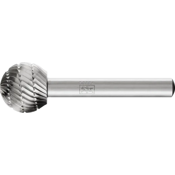 Zahnung 3 ist mit Spanbrechern versehen und eignet sich besonders gut zur Zerspanung von Stahl, Stahlguss und Gusseisen. Sie wird in einem Drehzahlbereich je nach Frässtiftdurchmesser von 1.200 bis 7.900 RPM eingesetzt. Kugelförmiger Frässtift.