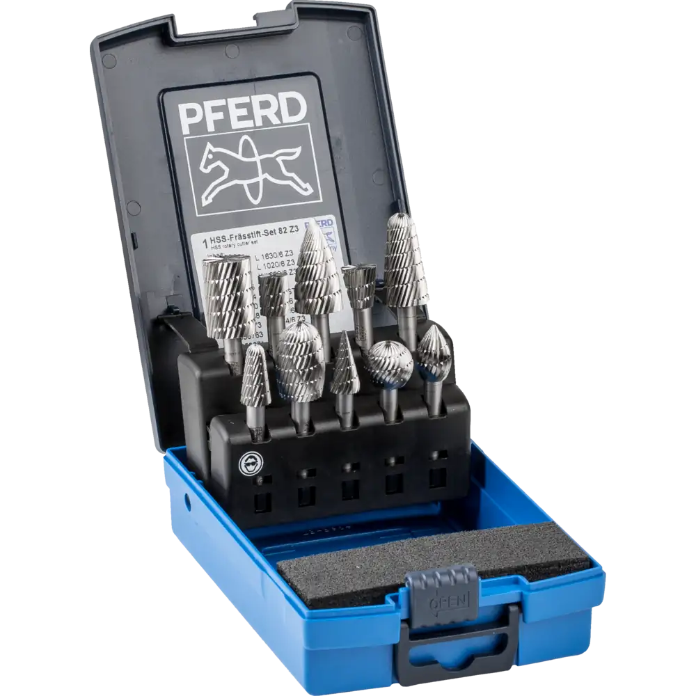 Pferd Tools HSS Frässtift Set 82 10-tlg. Zahnung 3 Ø 16/12/10mm Schaft-Ø 6mm universal mittel fein
