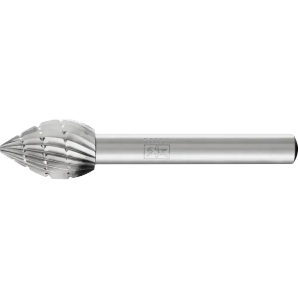 Zahnung 3 ist mit Spanbrechern versehen und eignet sich besonders gut zur Zerspanung von Stahl, Stahlguss und Gusseisen. Sie wird in einem Drehzahlbereich je nach Frässtiftdurchmesser von 1.200 bis 7.900 RPM eingesetzt. Frässtifte in 4 Sonderformen mit Schaftdurchmesser 6 mm. Durch ihre unterschiedliche Formgebung bestens für verschiedenste Fräsarbeiten geeignet.