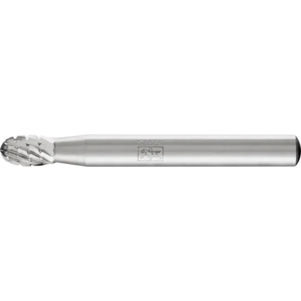 Zahnung 3 ist mit Spanbrechern versehen und eignet sich besonders gut zur Zerspanung von Stahl, Stahlguss und Gusseisen. Sie wird in einem Drehzahlbereich je nach Frässtiftdurchmesser von 1.200 bis 7.900 RPM eingesetzt. Tropfenförmiger Frässtift.