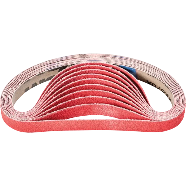 Für aggressives Schleifen mit höchster Zerspanungsleistung an harten, schlecht wärmeleitenden Werkstoffen. Konstante Höchstleistung durch sich selbst schärfendes Keramikkorn. Schleifaktive Zusätze im Belag erzielen eine deutlich höhere Abtragsleistung, verhindern das Zusetzen und bewirken einen kühleren Schliff. Kurzbänder sind auf die am Markt gängigen Bandschleifmaschinen abgestimmt. Sie werden in ISO 2976 unter der Bezeichnung „Schleifbänder“ geführt.