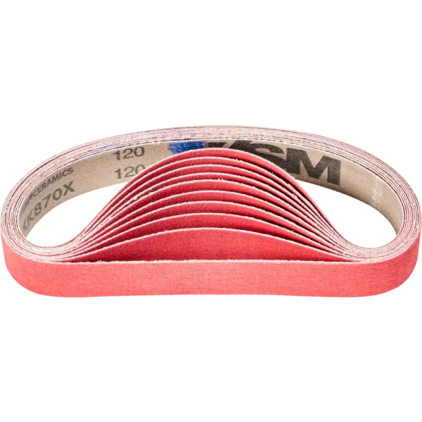 Für aggressives Schleifen mit höchster Zerspanungsleistung an harten, schlecht wärmeleitenden Werkstoffen. Konstante Höchstleistung durch sich selbst schärfendes Keramikkorn. Schleifaktive Zusätze im Belag erzielen eine deutlich höhere Abtragsleistung, verhindern das Zusetzen und bewirken einen kühleren Schliff. Kurzbänder sind auf die am Markt gängigen Bandschleifmaschinen abgestimmt. Sie werden in ISO 2976 unter der Bezeichnung „Schleifbänder“ geführt.