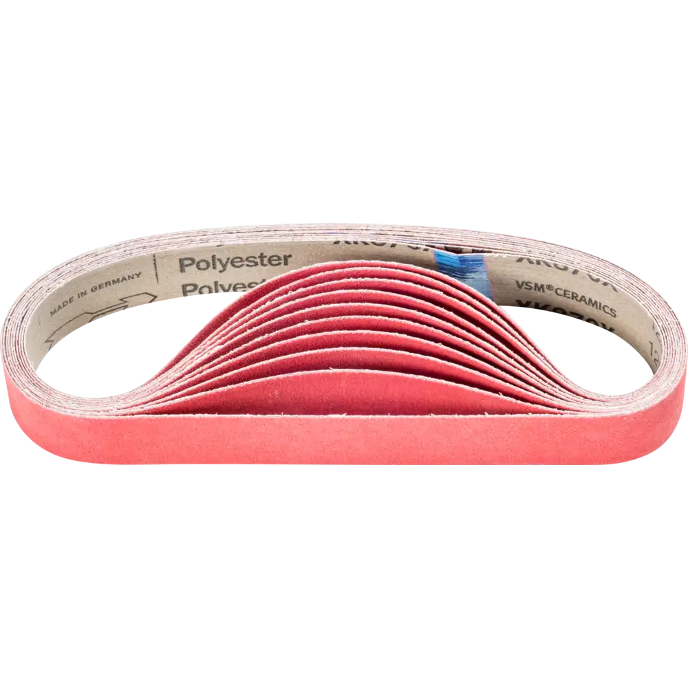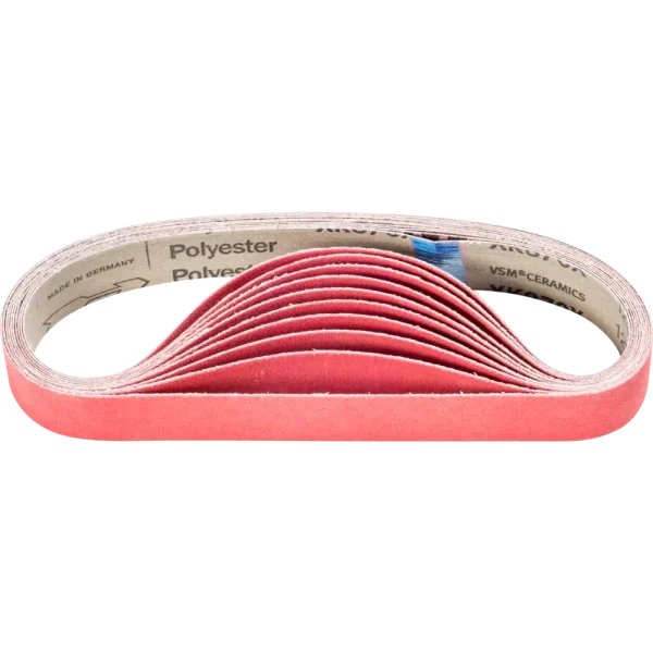 Für aggressives Schleifen mit höchster Zerspanungsleistung an harten, schlecht wärmeleitenden Werkstoffen. Konstante Höchstleistung durch sich selbst schärfendes Keramikkorn. Schleifaktive Zusätze im Belag erzielen eine deutlich höhere Abtragsleistung, verhindern das Zusetzen und bewirken einen kühleren Schliff. Kurzbänder sind auf die am Markt gängigen Bandschleifmaschinen abgestimmt. Sie werden in ISO 2976 unter der Bezeichnung „Schleifbänder“ geführt.
