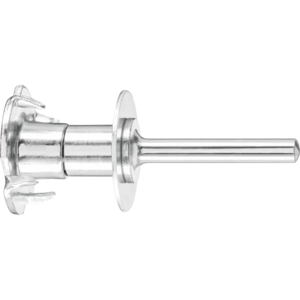 Bolzen und Schäfte zur Aufnahme von Feinschleif- und Polierwerkzeugen sind mit verschiedenen Gewinden und Schaftdurchmessern sowie in unterschiedlichen Ausführungen verfügbar. Werkzeughalter für POLICLEAN-Scheiben. Die Ausführung bietet Platz für zwei Scheiben.