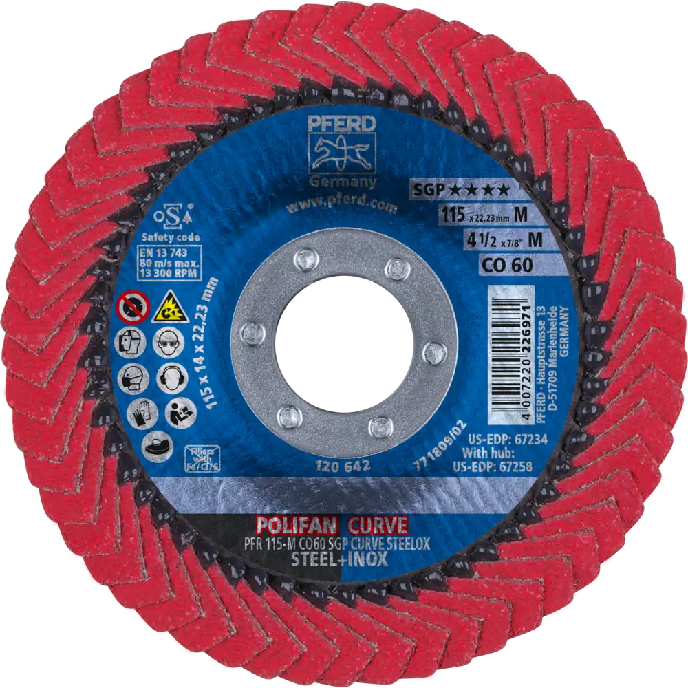 Pferd Tools POLIFAN CURVE Fächerscheibe PFR 115×22,23 mm Breite M CO60 SGP STEELOX für Stahl/Edelstahl