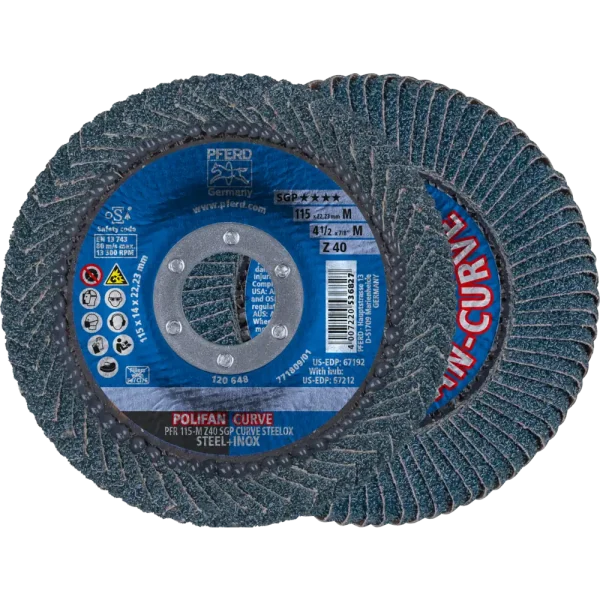 Pferd Tools POLIFAN CURVE Fächerscheibe PFR 115×22,23 mm Breite M Z40 SGP STEELOX für Stahl/Edelstahl