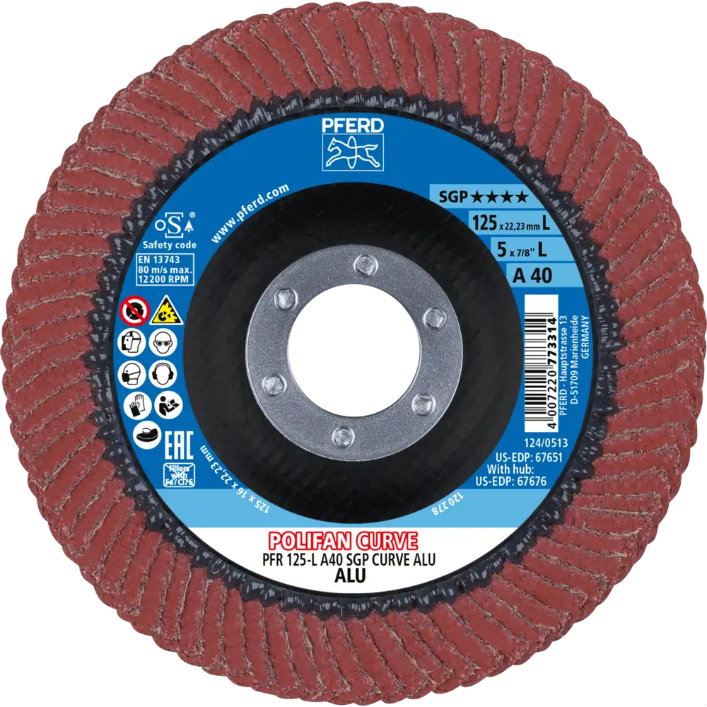 Pferd Tools POLIFAN CURVE Fächerscheibe PFR 125×22,23 mm Breite L A40 Speziallinie SGP ALU für Alu