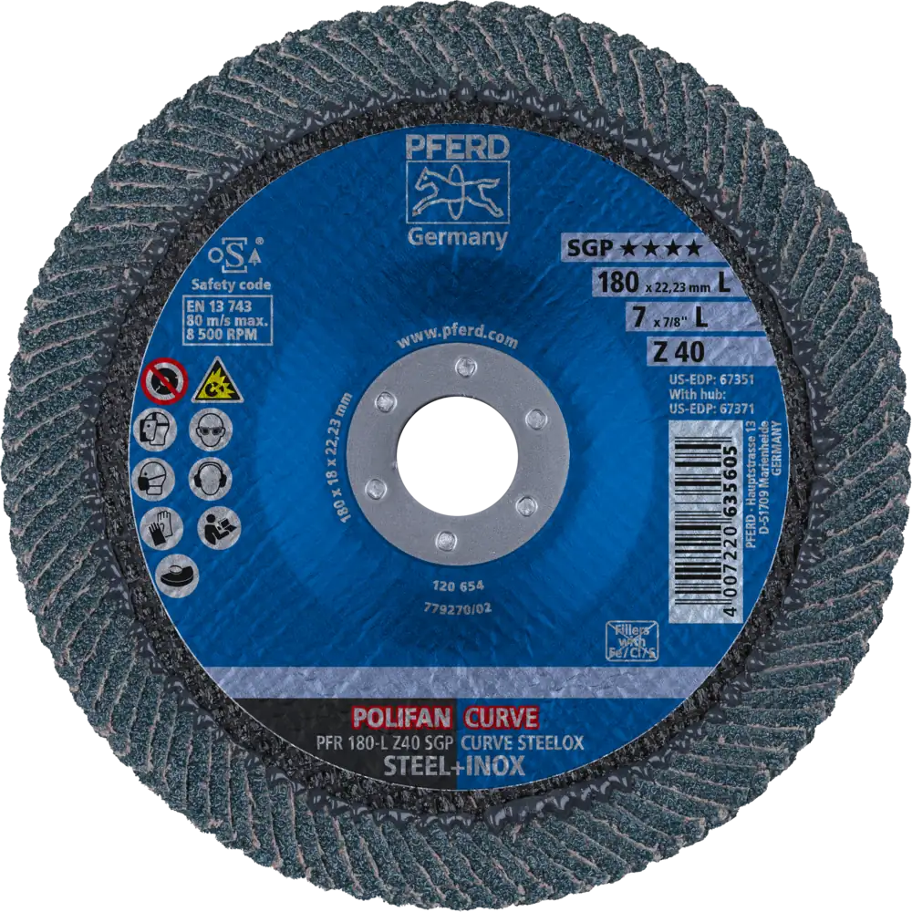 Pferd Tools POLIFAN CURVE Fächerscheibe PFR 180×22,23 mm Breite L Z40 SGP STEELOX für Stahl/Edelstahl
