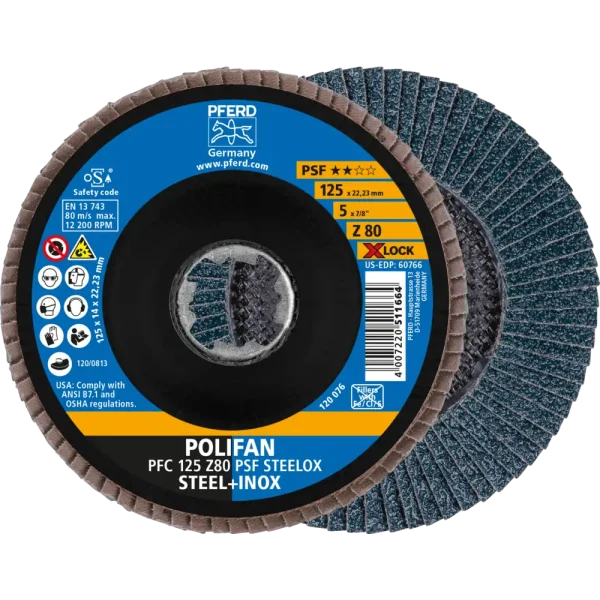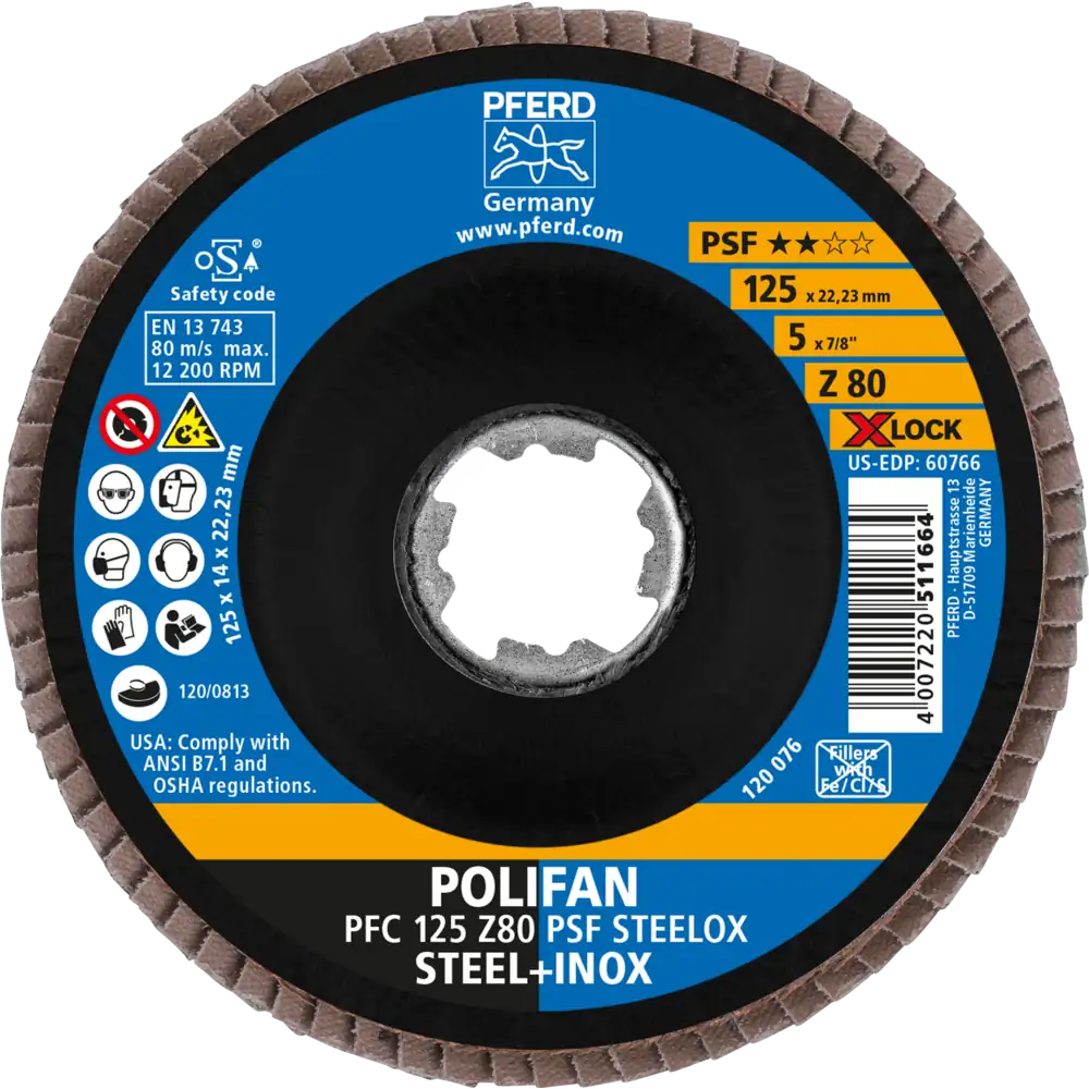 Pferd Tools POLIFAN Fächerscheibe PFC 125 mm X-LOCK konisch Z80 Uni.-Linie PSF STEELOX Stahl/Edelstahl