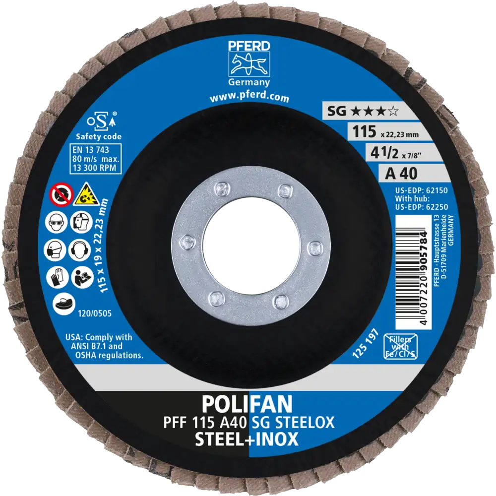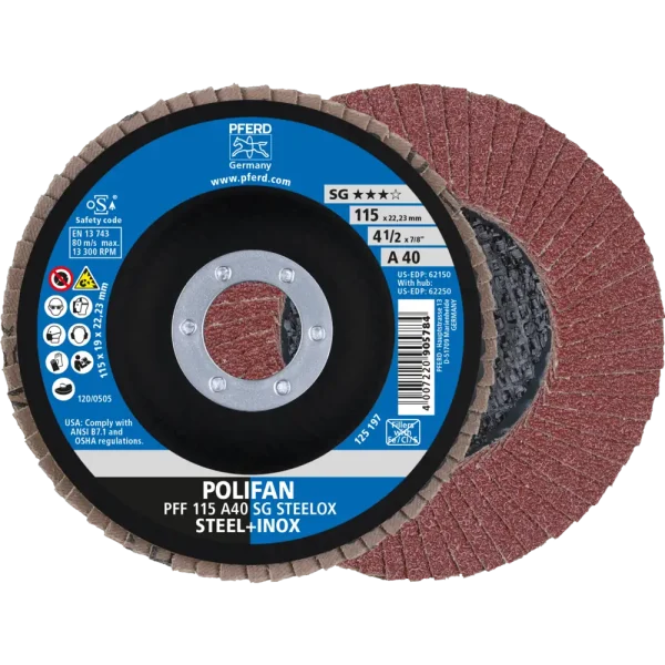 Pferd Tools POLIFAN Fächerscheibe PFF 115×22,23 mm flach A40 Leistungslinie SG STEELOX Stahl/Edelstahl