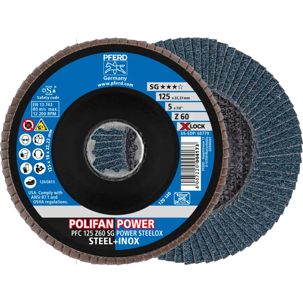 Pferd Tools POLIFAN POWER Fächerscheibe PFC 125 mm X-LOCK konisch Z60 SG STEELOX Stahl/Edelstahl