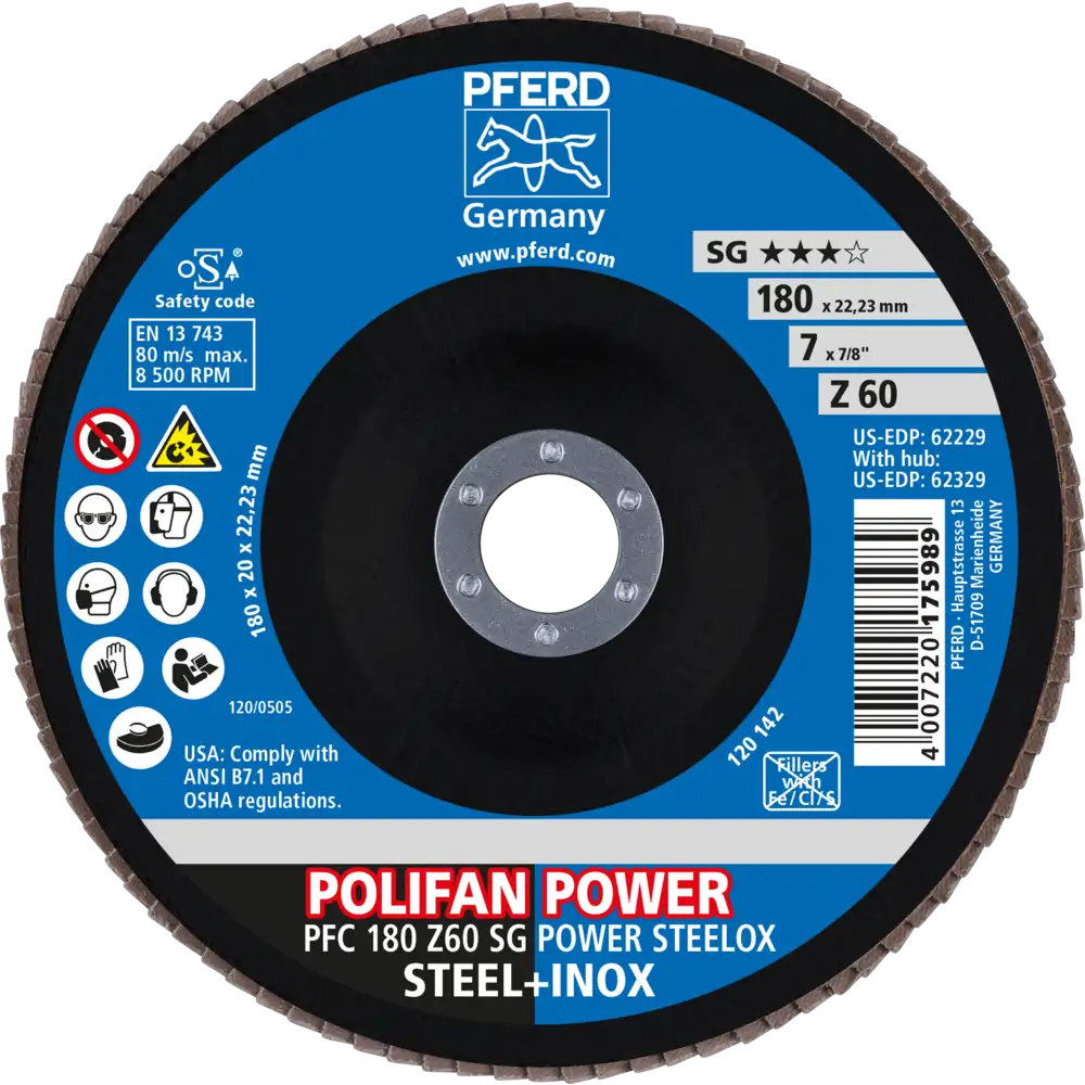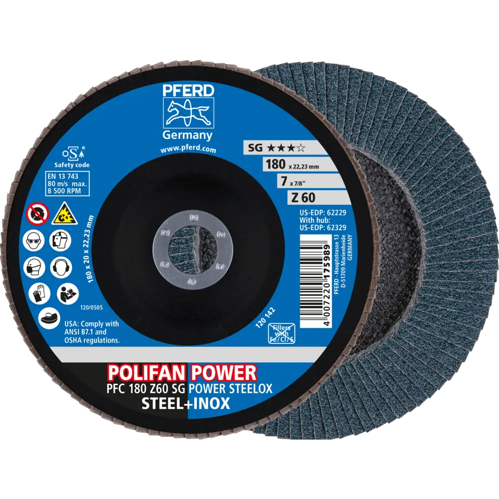 Pferd Tools POLIFAN POWER Fächerscheibe PFC 180×22,23 mm konisch Z60 SG STEELOX Stahl/Edelstahl