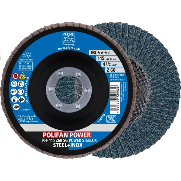 Pferd Tools POLIFAN POWER Fächerscheibe PFF 115×22,23 mm flach Z60 Leistungslinie SG POWER STEELOX Stahl/Edelstahl