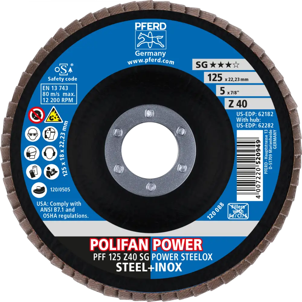 Pferd Tools POLIFAN POWER Fächerscheibe PFF 125×22,23 mm flach Z40 Leistungslinie SG POWER STEELOX Stahl/Edelstahl