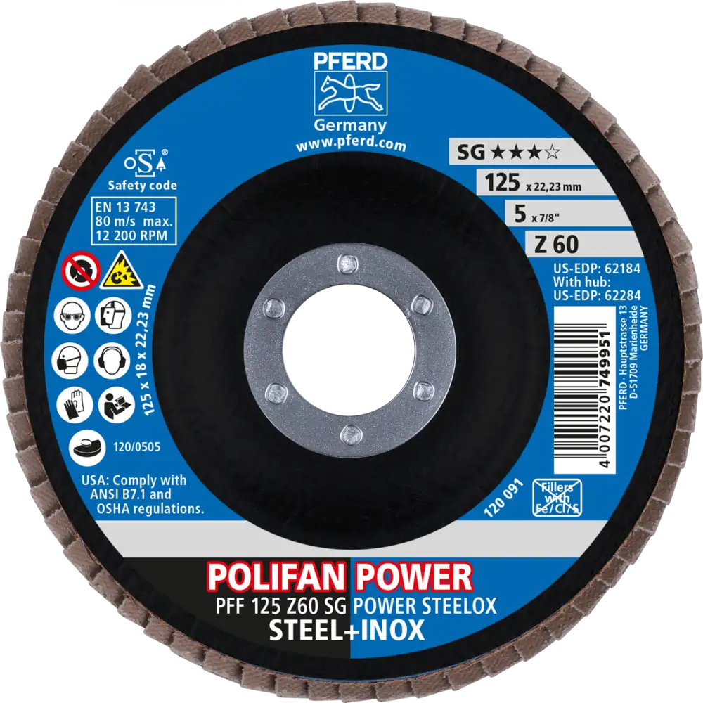 Pferd Tools POLIFAN POWER Fächerscheibe PFF 125×22,23 mm flach Z60 Leistungslinie SG POWER STEELOX Stahl/Edelstahl
