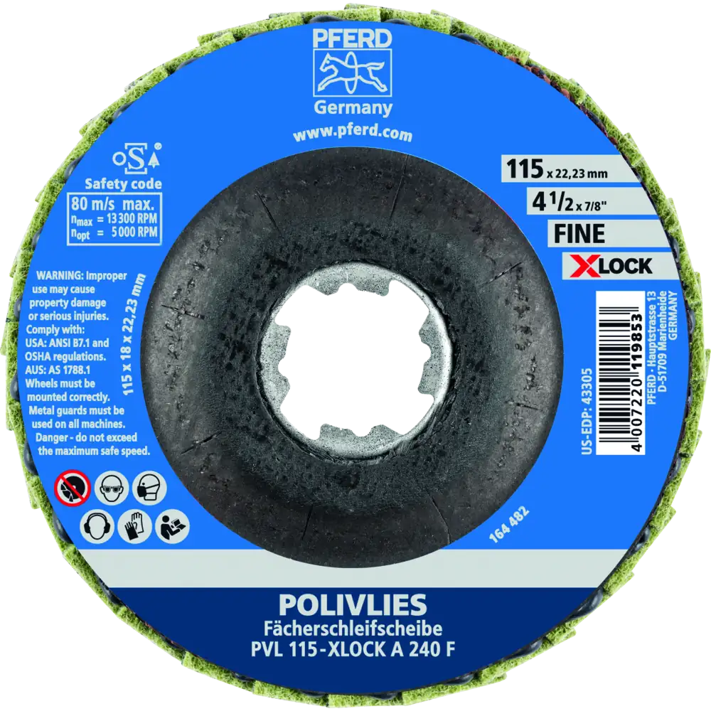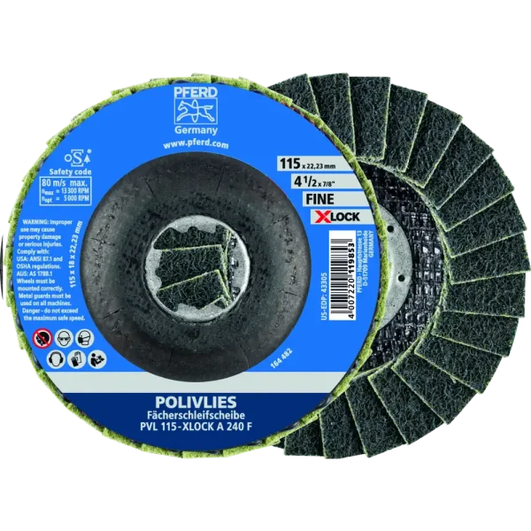 Pferd Tools POLIVLIES-Fächerscheibe PVL Korund Ø 115 mm Bohrung 22,23 mm/X-LOCK A240F für Feinschliff