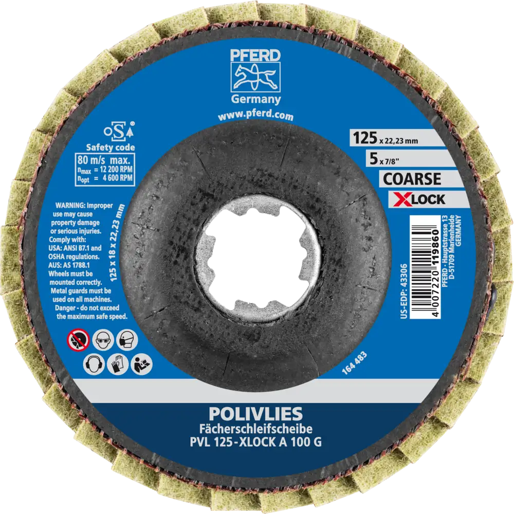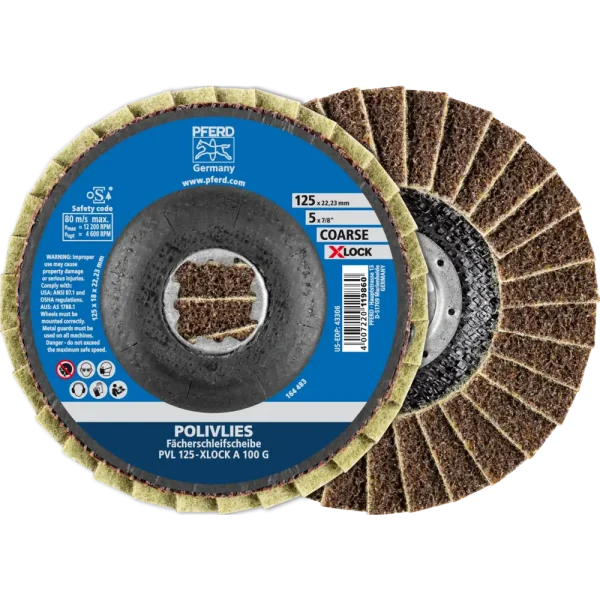 Pferd Tools POLIVLIES-Fächerscheibe PVL Korund Ø 125 mm Bohrung 22,23 mm/X-LOCK A100G für Feinschliff