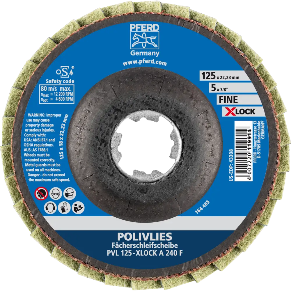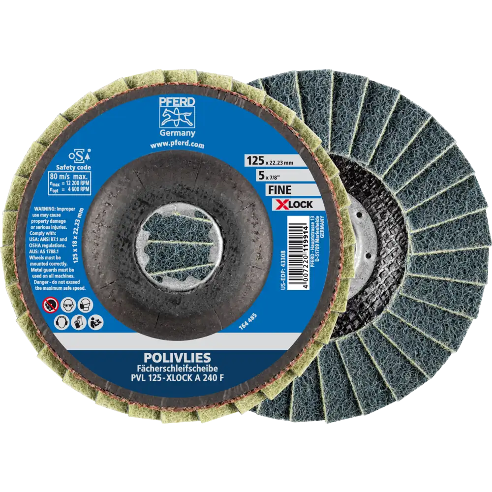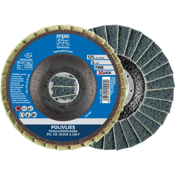 Pferd Tools POLIVLIES-Fächerscheibe PVL Korund Ø 125 mm Bohrung 22,23 mm/X-LOCK A240F für Feinschliff
