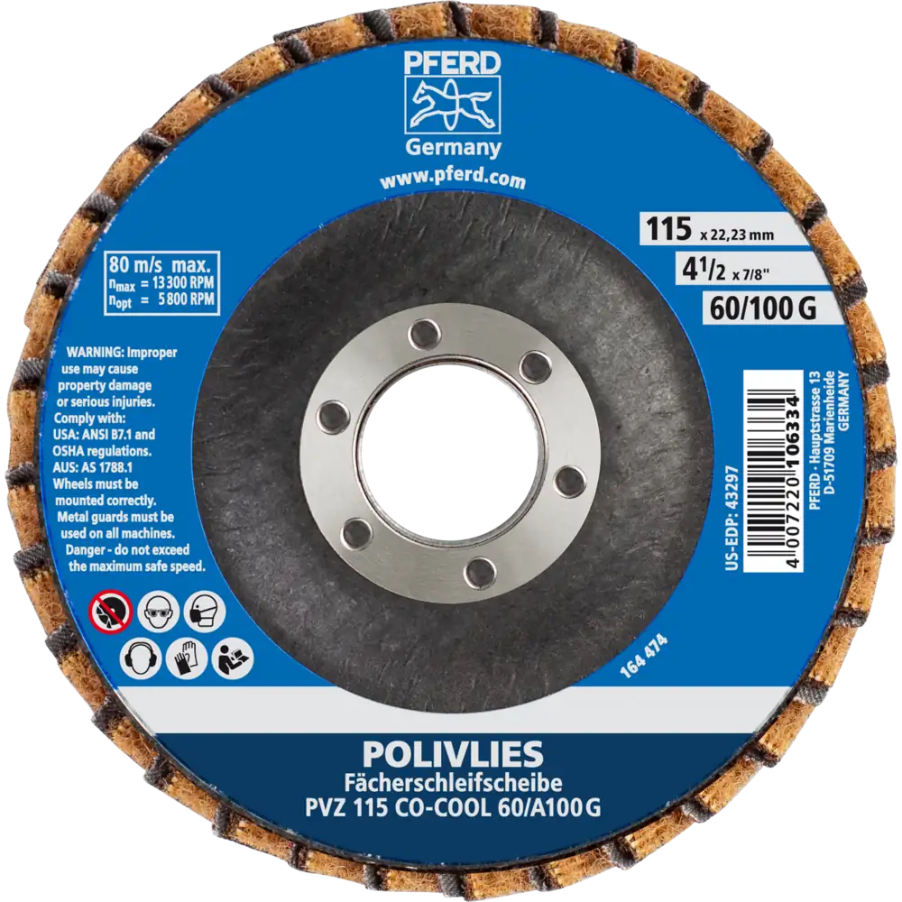 Pferd Tools POLIVLIES-Fächerscheibe PVZ Keramik Ø 115 mm Bohrung 22,23 mm CO-COOL60/A100 G für Feinschliff