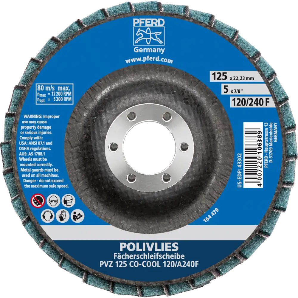 Pferd Tools POLIVLIES-Fächerscheibe PVZ Keramik Ø 125 mm Bohrung 22,23 mm CO-COOL120/A240F für Feinschliff