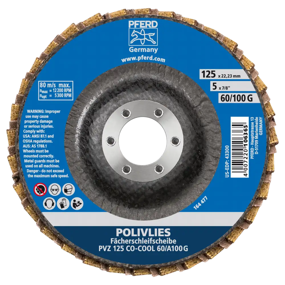 Pferd Tools POLIVLIES-Fächerscheibe PVZ Keramik Ø 125 mm Bohrung 22,23 mm CO-COOL60/A100 G für Feinschliff