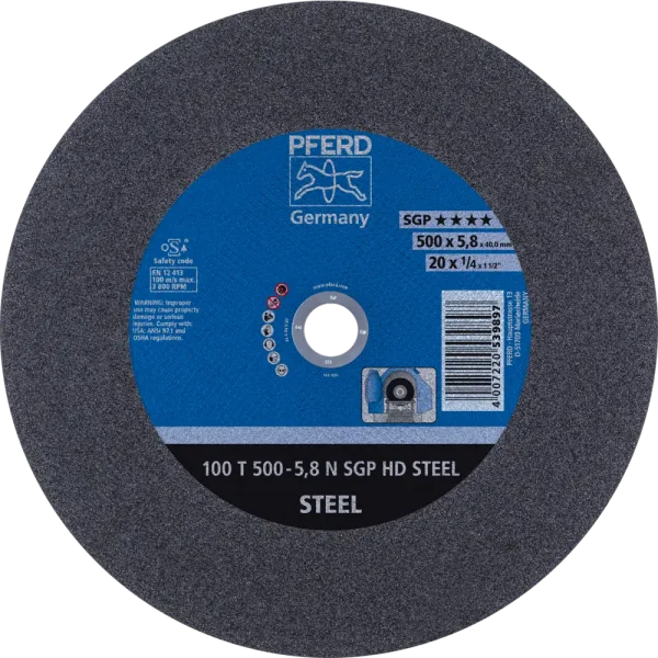 Pferd Tools Stationäre Trennscheibe T 500×5,8x40mm “mittelhart” HD STEEL für Stahl 100m/s