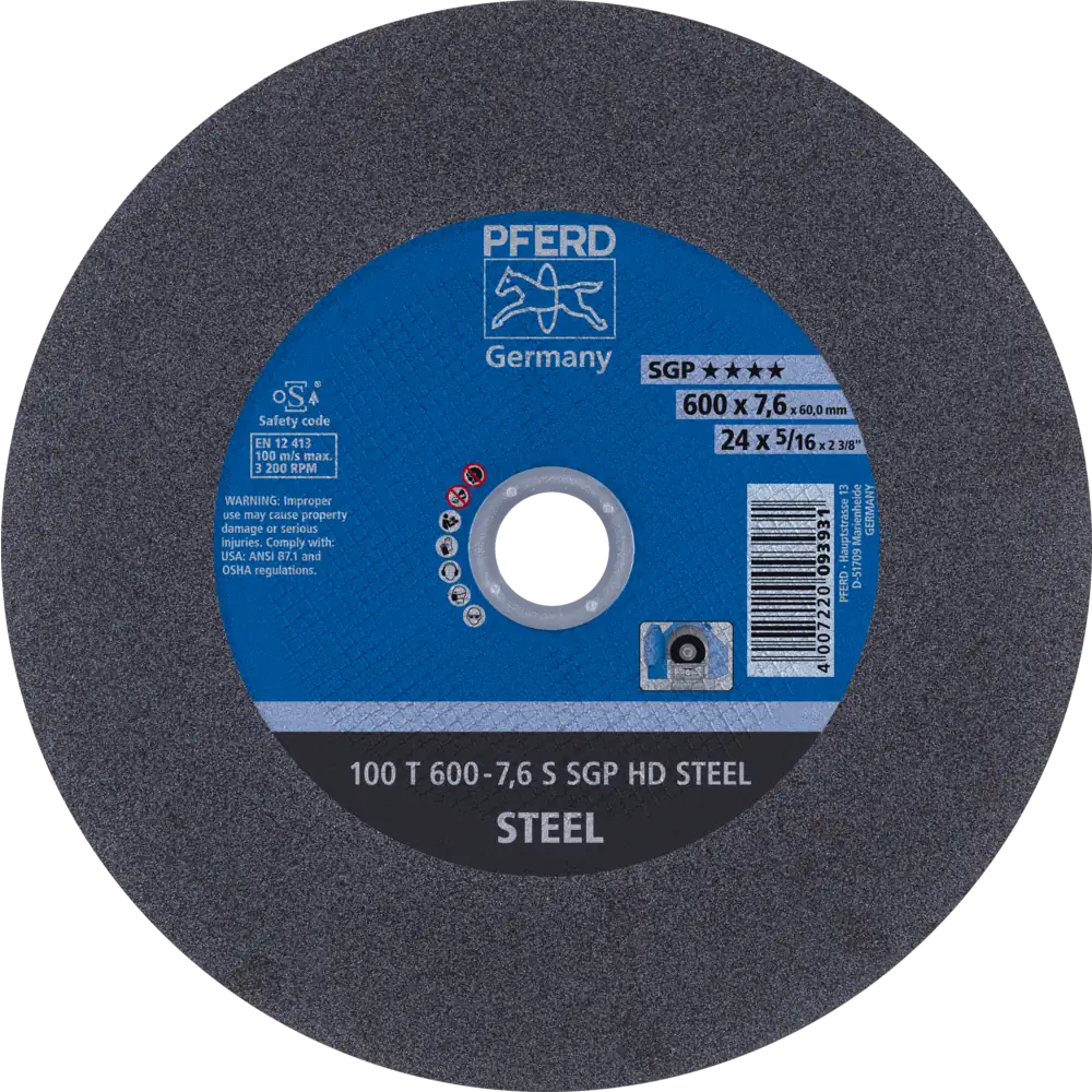 Technische Daten – PFERD TOOLS Typ 100 T 600-7,6 S SGP HD STEEL/60,0