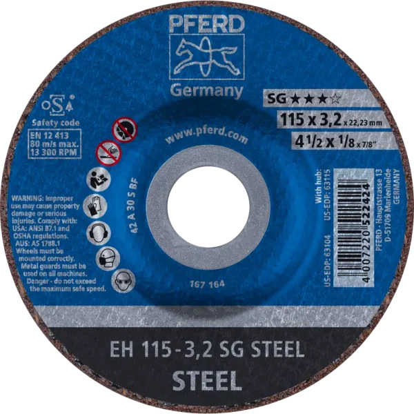 Pferd Tools Trennscheibe EH 115×3,2×22,23 mm gekröpft Leistungslinie SG STEEL für Stahl