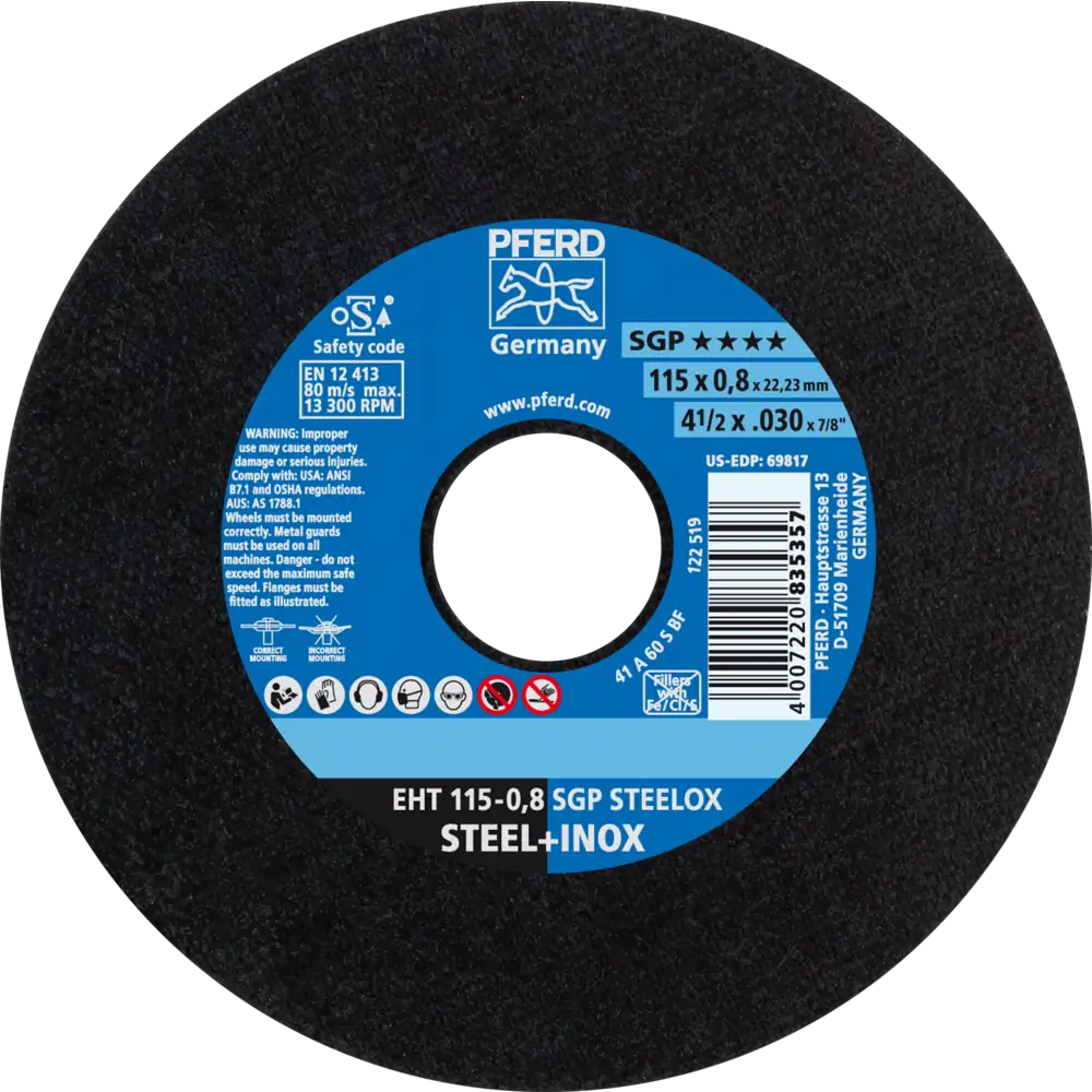 Pferd Tools Trennscheibe EHT 115×0,8×22,23 mm gerade Speziallinie SGP STEELOX für Stahl/Edelstahl