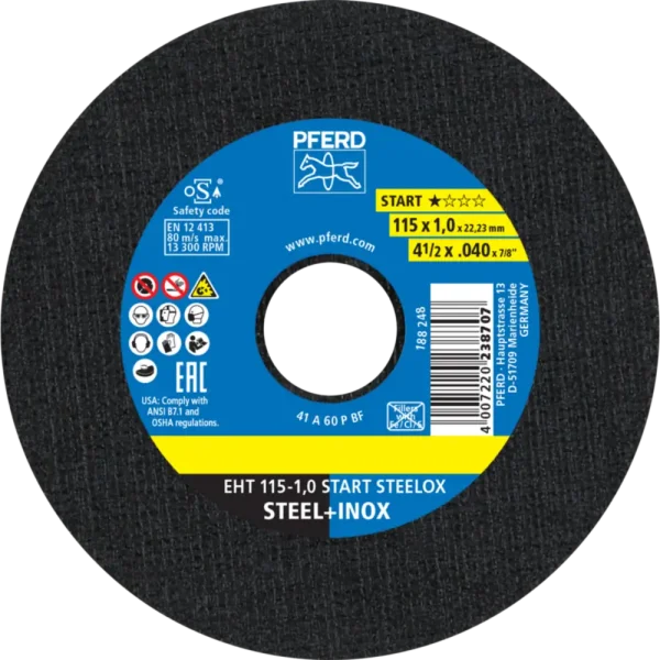 Startseite » Shop » Pferd Tools Trennscheibe EHT 115×1,0x22,23 mm gerade Startlinie START STEELOX für Stahl/Edelstahl