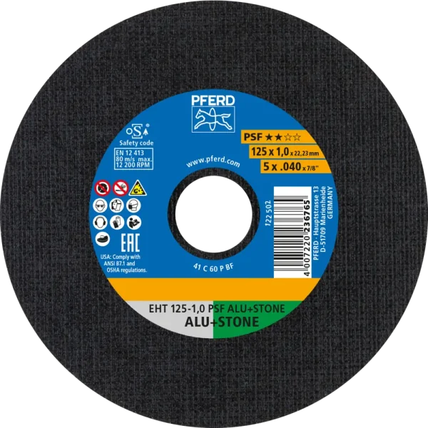 Pferd Tools Trennscheibe EHT 125×1,0x22,23 mm gerade Uni.-Linie PSF ALU+STONE für Alu/NE-Met./Stein/PVC (10)
